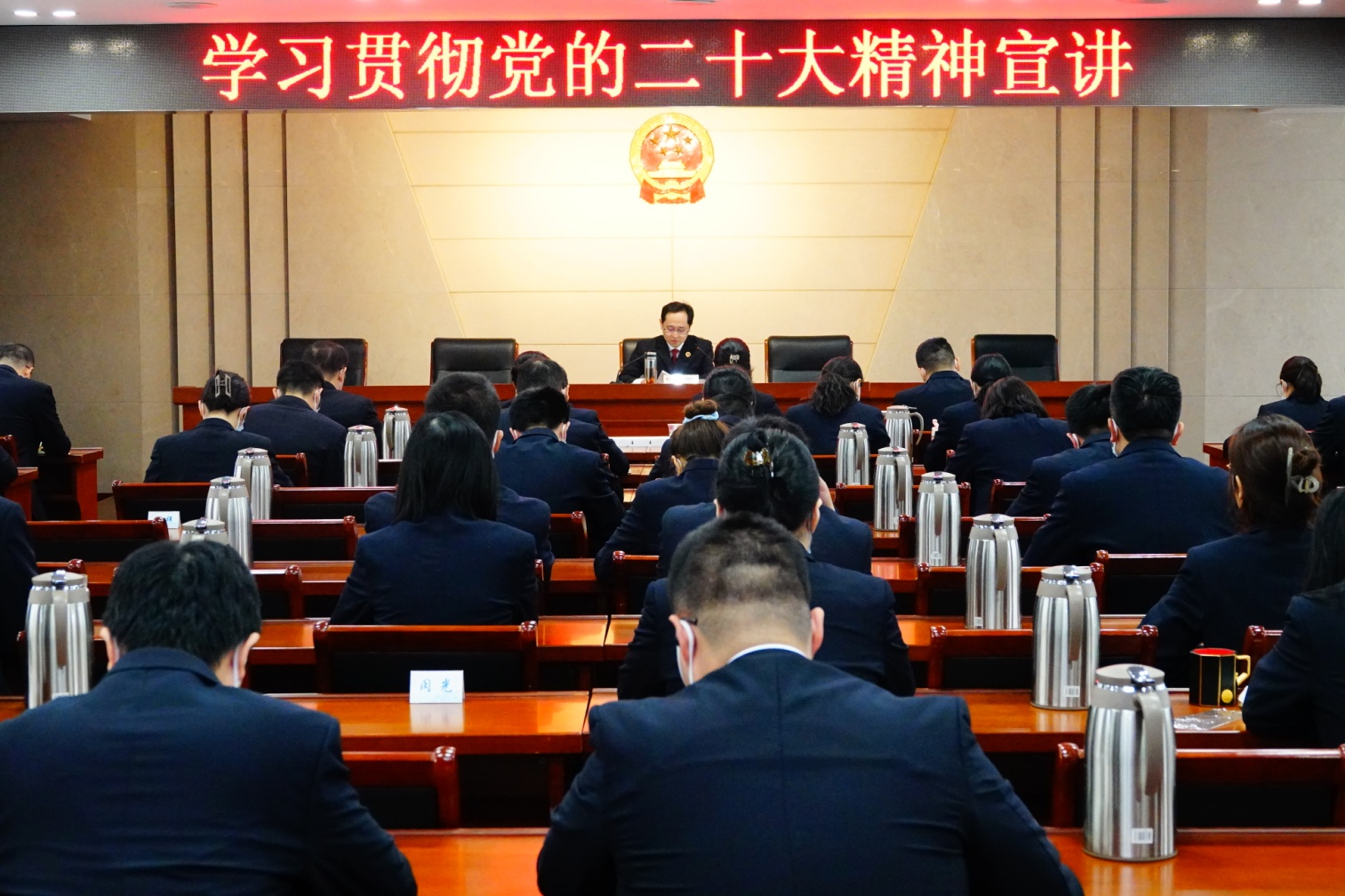 为深入学习贯彻党的二十大精神,激励全院干警振奋精神、主动担当、奋发作为,推动365商城官网_365bet备用网_365bet网站工作高质量发展,根据区委要求,11月16日下午,我院党组书记、365商城官网_365bet备用网_365bet网站长舒广权为全体干警作了“学习贯彻党的二十大精神”专题宣讲。